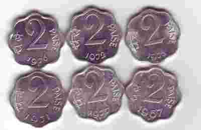 INDIE 6 SZTUK MONET 2 PAISE /54AV/