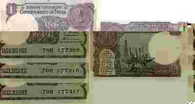 INDIE BANKNOT 1 RUPEE 1986 r. 3 BANKNOTY (50AV)
