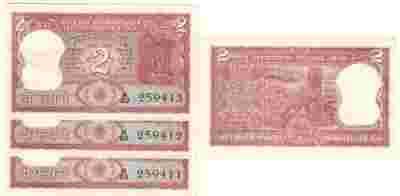 INDIE BANKNOT 2 RUPEES 3 banknoty (120AV)