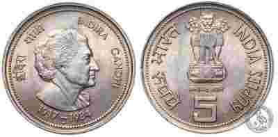 Indie - moneta - 5 Rupii 1984 - Indira Gandhi