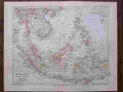 INDOCHINY i ARCHIPELAG MALAJSKI stara mapa 1895 r.