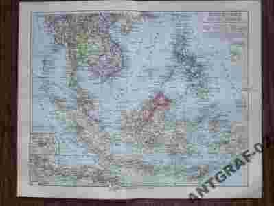 INDOCHINY i ARCHIPELAG MALAJSKI stara mapa 1909 r.