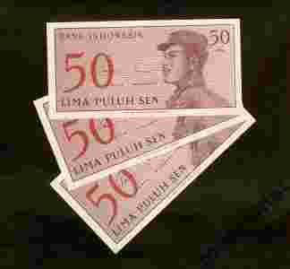 Indonezja 50 SEN 1964 Zestaw 3 sztuk!! Stan UNC!!!