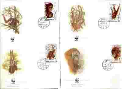 INDONEZJA. Mi.1291-4.FDC.MAŁPY. WWF
