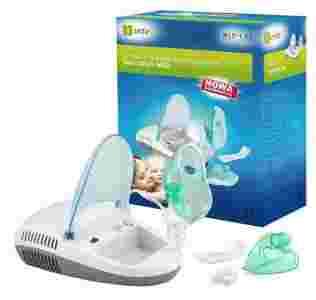 Inhalator tłokowy do leczenia górnych dróg oddechowych, przede wszystkim astmy oraz podobnych nieprawidłowości oddechowych. Urządzenie wytwarza strumień powietrza, który zasysa do nebulizatora (pojemnika na roztwór leku) i zamienia go na aerozol, który wydostaje się poprzez maseczkę do inhalacji. Wewnątrz urządzenia lekarstwo jest rozrywane na drobne cząsteczki do wielkości odpowiedniej do prawidłowej inhalacji. Im większe ciśnienie w urządzeniu, tym mniejsze są cząstki lekarstwa i krótszy jest czas inhalacji.