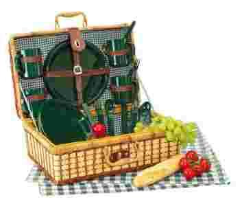 INSPIRION Bambusowy kosz piknikowy obrus zastawa 4