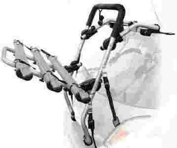 Stalowy, lekki i uniwersalny uchwyt na tylną klapę samochodu na 3 rowery.