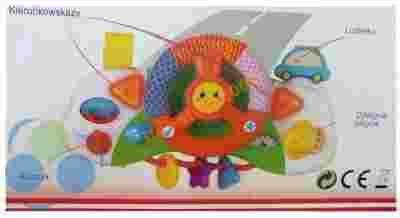 - na dole znajdują się kolorowe grzechotki w różnych kształtach.