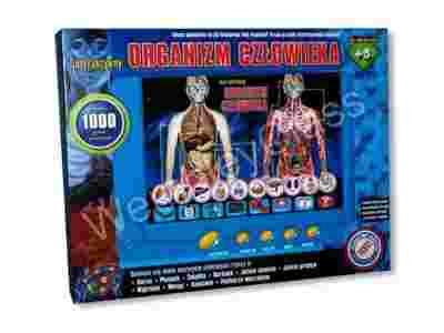 Ciekawe informacje na temat 10 głównych organów człowieka: mózg, płuca, wątroba, żołądek, jelito grube, jelito cienkie, kości, nerki, pęcherz moczowy usłyszysz naciskając na symbol organu człowieka i przyciski funkcyjne. Na temat każdego organu można się dowiedzieć o jego rozmiarze, umiejscowieniu, układzie, funkcji, działaniu, ciekawych faktach oraz co jest dla niego zdrowe. Funkcja "QUIZ" zada 1000 pytań na temat budowy organizmu człowieka - odpowiedzi udziela się naciskając odpowiedni symbol organu, przycisk "PRAWDA" lub "FAŁSZ", a gdy nie znasz odpowiedzi możesz nacisnąć "POMOC" usłyszysz wówczas prawidłową odpowiedź. Zabawka jest doskonałym wprowadzeniem do wiedzy o organizmie, naucza o zdrowiu w łatwy i zabawny sposób po czym sprawdza wiedzę dzięki 1000 pytań, które umie zadać głosem lektora.
