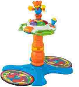 Na szczycie wieży znajduje się kolorowy stolik edukacyjny z wygodnymi uchwytami, mikrofonem oraz pięcioma podświetlanymi przyciskami
