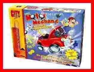Zabawa w mechanika samochodowego: złóż auto szybciej od swoich przeciwników lub zamontuj jak najwięcej części przed upływem czasu, wtedy wygrasz! Podwozie montuje się na podnośniku przed rozpoczęciem gry. Gdy auto zostanie złożone przed upływem czasu, należy zatrzymać mechanizm odmierzania czasu. Jeśli auto nie zostanie złożone do przed upływem wyznaczonego czasu, a gracze chcieli by dokończyć montaż, to mogą zatrzymać odmierzanie czasu. W przeciwnym razie podnośnik wystrzelli w powietrze niedokończone auto.Zawartość pudełka:podnośnik, podwozie, cztery koła, karoseria, pokrywa bagażnika, przednia szyba, zagłówek kierowcy, silnik i pokrywa silnika, reflektory, zderzaki, kierownica, koło zapasowe umieszczane z tyłu auta, fotel kierowcy, kierowca, mały piesek, opis do gry.Gra przeznaczona:dla 2 do 4 graczy, w wieku od 4 lat.
