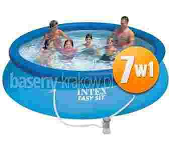 Chciałbyś się ochłodzić w upalne letnie dni? Kup basen Easy Set firmy Intex! Dzięki niemu będziesz mógł korzystać z orzeźwiającej kąpieli kiedy tylko będziesz miał na to ochotę. Kupując zestaw 7w1 otrzymasz basen o wymiarach 366 cm x 76 cm pokryty trwałym trójwarstwowym PVC. Dzięki niemu będziesz mógł cieszyć się z kąpieli w swoim basenie przez wiele lat.