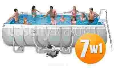 Solidny basen ogrodowy z metalowym stelażem to propozycja dla osób, które chciałyby zapewnić sobie miejsce do odpoczynku, a swoim pociechom do aktywnej zabawy na świeżym powietrzu. Wykonanie z trójwarstwowego PVC świadczy o jakości zbiornika, który z powodzeniem będzie pełnić swoje funkcje przez wiele sezonów. Nie obawiaj się o skompilowany montaż – z instrukcją dołączoną na płycie DVD zajmie Ci to zaledwie 60 minut, a z zalet orzeźwiającej kąpieli będziesz korzystać co najmniej kilka miesięcy. Prostokątny basen o wymiarach 549 x 274 x 132 cm pozwala na wypełnienie go wodą aż w 90 % pojemności. Jego gabaryty zapewnią wystarczająco dużo miejsca dla Ciebie i Twoich najbliższych.