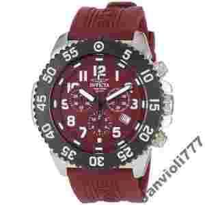 Brand Name: Invicta Model number: 1105 Part Number: 1105 Item Shape: round Dial window material type: flame-fusion Display Type: analog Clasp: Buckle Case material: stainless-steel Case diameter: 49 millimeters Case Thickness: 13 millimeters Band material: Rubber Band length: mens-standard Band width: 24 millimeters Band Color: red Dial color: red Bezel material: stainless-steel Bezel Function: unidirectional Calendar: Date Special Features: Chronograph Movement: swiss-quartz Water resistant depth: 100 Meters