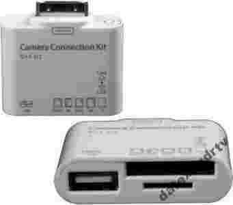 -umożliwia pobieranie zdjęć bezpośrednio z kart pamięci, wystarczy włożyć kartę do slotu w Connection Kit a następnie podłączyć do iPada.