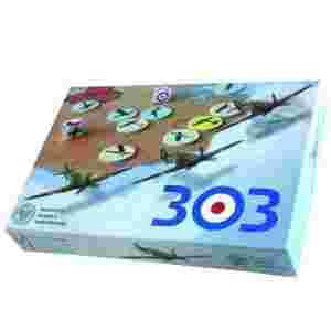 Opis produktu:Gra „303” jest trójjęzyczna, angielskoczeskopolska, co przypomina wspólna walkę w obronie wolności pilotów czechosłowackich i polskich, którzy wsparli Brytyjczyków w Bitwie o Anglię. Symbolem braterstwa broni są postacie trzech lotników Dywizjonu 303: Witolda Urbanowicza, Johna Kenta, Josefa Frantiąka.O bohaterach tej bitwy i samolotach na których walczyli można dowiedzieć się więcej z dołączonego do gry opracowania.Gra jest jednocześnie dla dzieci i dorosłych. Gra która łączy edukacyjne przesłanie z dużą grywalnością.Taka gra musi być dynamiczna, mieć ciekawy klimat i proste zasady oraz dawać młodszym i starszym strategom dużo satysfakcji z podejmowania właściwych decyzji. Żeby gra była emocjonująca potrzebne są jeszcze odrobina losowości i szybko uciekający czas.„303” jest współczesną grą strategiczno losową, w którą można zagrać na krótkiej przerwie w szkole czy w pracy. Niemiecki bombowiec w obstawie myśliwców zbliża się do Londynu. By go powstrzymać trzeba umiejętnie odciągnąć eskortującego go myśliwce i zadać opancerzonej maszynie decydujące trafienie.Im bliżej podleci się do przeciwnika tym większe szanse na trafienie, ale i większe ryzyko postrzału.Trzeba jednak uważać by rachunek prawdopodobieństwa nie spłatał nam figla.Zawartość pudełka:plansza do gry wzorowana na stole sztabowym Centrum Dowodzenia RAF,12 dwustronnych żetonow z samolotami,3 kości strzału,1 wskaźnik zużycia paliwa,12 znaczników strzału,broszura z instrukcją i opracowaniem historycznym.Gra przeznaczona:dla 2 graczy w wieku od 10 lat.