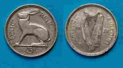 Irlandia 3 Pence 1928 rok od 1zł i BCM