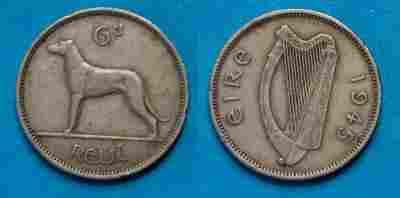 Irlandia 6 Pence 1945 rok od 1zł i BCM