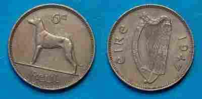 Irlandia 6 Pence 1947 rok od 1zł i BCM