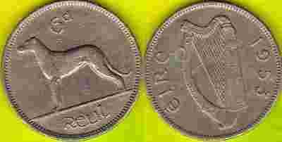 IRLANDIA 6 Pence 1953 r.