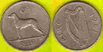 IRLANDIA 6 Pence 1961 r.