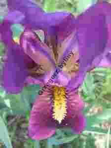Odmiana ‘Jerry Rubin’ ma kwiat o intensywnej fioletowo-purpurowej barwie. Bródka barwy żółtej.
