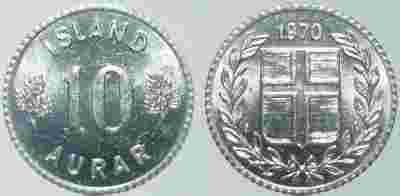 ISLANDIA - 10 AURAR 1970 r moneta nr 1.