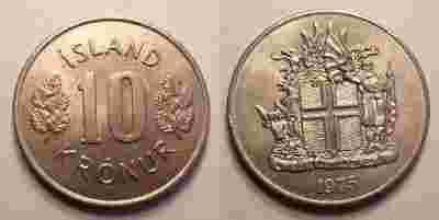 Islandia, 10 koron, 1975 r.