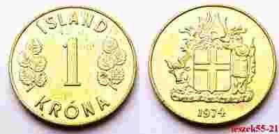 ISLANDIA 1 KRONA 1974 ŻÓŁTA MENNICZA
