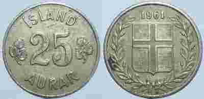 ISLANDIA - 25 AURAR 1961 r
