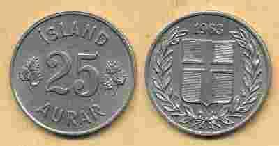 Islandia 25 Aurar - 1963r ... Monety