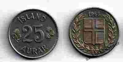 ISLANDIA - 25 aurar - 1966 rok - śliczna