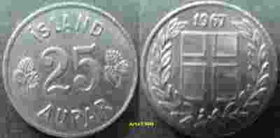 Islandia 25 aurar 1967