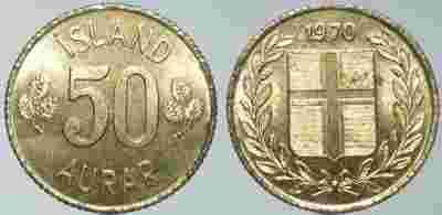 ISLANDIA - 50 AURAR 1970 r moneta nr 2.