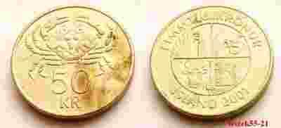 ISLANDIA 50 KRONUR 2001 ZWIERZĘTA KRAB