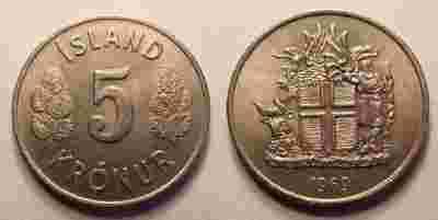 Islandia, 5 koron, 1969 r.