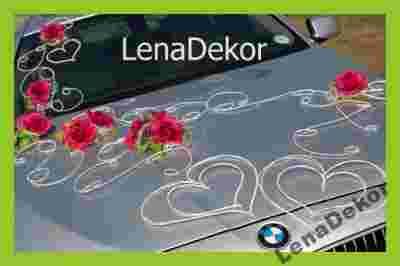 Na zdjęciach przedstawiamy zestaw dekoracyjny ISMENA w kilku różnych układach. Do przystrojenia każdego samochodu wykorzystano tylko JEDEN komplet dekoracji ISMENA. Ozdobę można również zamocować według własnego pomysłu. Zestaw ISMENA jest uniwersalny. Składa się z wielu osobnych elementów, które można dowolnie ze sobą komponować. Łatwo dopasować go do każdego samochodu. Stroiki można zamocować na masce, dachu, drzwiach lub szybach.