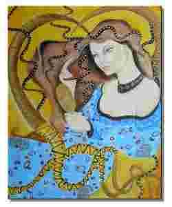 Obraz malowany na płótnie naciągniętym na blejtram, technika mieszana , werniksowany.
