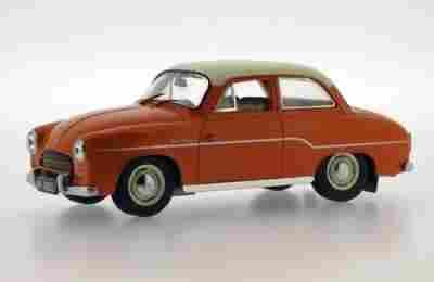 1962 Syrena 102 Peoples Republic of Poland (orange) pochodzi z kolekcji IST Models firmy IXO. Model metalowy z elementami plastikowymi wykończenia wnętrza.