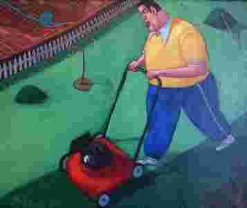 | Przedmiotem aukcji jest obraz Jacka Pałuchy, Kosiarka