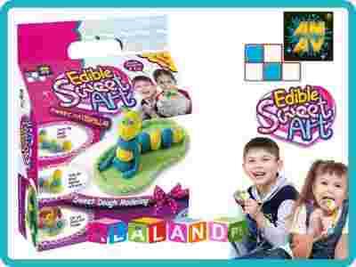 – nowa linia zestawów kreatywnych dla dzieci, których bazą jest słodka, jadalna masa w różnych kolorach i smakach. Linia ta proponuje szeroką gamę zestawów, z których można wykonać „niebiańsko słodkie”, jadalne i smaczne ślimaczki, gąsieniczki, misie, słonie, żabki, pingwiny. Ta kolorowa jadalna masa może być także użyta do dekoracji ciast lub wykonania lizaków, cukierków czy słodkiego bukieciku. Aby słodka masa uzyskała łatwą do modelowania konsystencję należy ją najpierw ugnieść w dłoniach, a potem, gdy już będzie wystarczająco miękka….. puścić wodze fantazji i… formować, rolować, dzielić na części, wycinać paski, paseczki, kółeczka, kwadraty i inne skomplikowane kształty ! „Klejem” do łączenia ze sobą uformowanych części jest woda. Wystarczy w miejscu łączenia spryskać/pokropić słodkie elementy. Możemy również wyczarować nowy kolor słodkiej modeliny łącząc ze sobą dwa lub trzy kolory podstawowe.