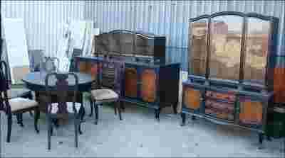 do renowacji. meble w stanie dobrym, wymagają kilku napraw stolarskich np. uzupełnienia ubytków, dorobienia blatów, półek oraz wykonania gruntownego odświeżenia wszystkich mebli, łącze ze zmianą koloru czarnego na ciemny brąz ale tę decyzję pozostawiamy przyszłemu nabywcy. Cena uwzględnia wszystkich w/w zabiegi