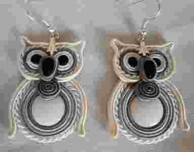 Do wykonania kolczyków użyto między innymi:sutasz czeskiej firmy Pega biały,ecru i odcienie popielatego