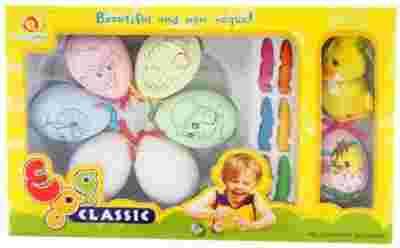 Zestaw 6 jajek do malowania kredkami z kurczakiem i pisanką. Zabawka dla dzieci powyżej 3 roku życia.