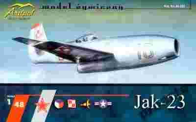 W skład zestawu wchodzi: • Części z żywicy + osłona kabiny wykonana technika próżniową. • Blaszka fototrawiona z elementami wyposażenia kabiny + zegary na przezroczystej folii. • Instrukcja montażu i malowania. • Kalkomania umożliwiająca wykonanie jednej z siedmiu wersji malowania: - Jak-23 - FU-599 - USAF, Stany zjednoczone Ameryki. - Jak-23 - HX-51 - Lotnictwo Czechosłowacji. - Jak-23 - KR-17 - Lotnictwo Czechosłowacji. - Jak-23 - "żółte 52" - Lotnictwo ZSRR. - Jak-23 - "żółte 16" - Lotnictwo Ludowego Wojska Polskiego. - Jak-23 - "żółte 12" - Lotnictwo Ludowego Wojska Polskiego. - Jak-23 - SP-GLK - Instytut Lotnictwa, Polska.