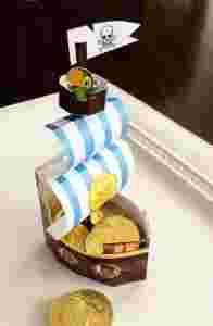 Na tej aukcji prezentuję szablon-pudełko statek na przekąski, smakołyki inspirowany znaną i lubianą bajką JAKE I PIRACI Z NIBYLANDII