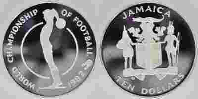 JAMAJKA 10 DOLLARS Ag 1982 FOOTBALL 1982
