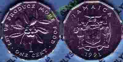 JAMAJKA /KM-64/ 1 CENT 1991 Owoce Wieloką. F.A.O.