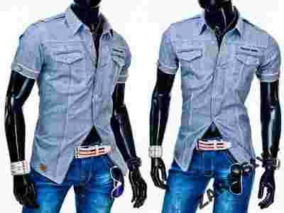 JAPAN ENOS 6813 NIEBIESKA KOSZULA K.RĘKAW_____XXL