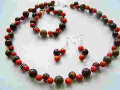 JAPIS KORAL NASZYJNIK BRANSOLETKA KOLCZYKI